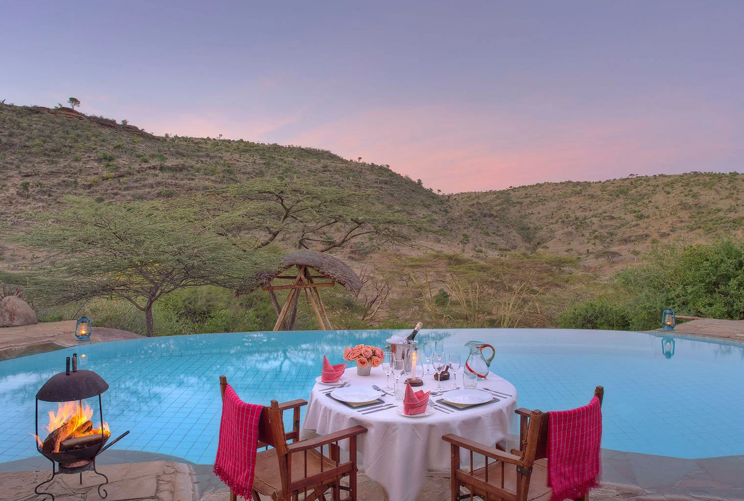 You can also experience the luxurious sensation of dining while the sun sets over the beautiful African landscape. What better way than to finish each wonderful and enlightening day during your stay than with swirling wavy vibrant colours merging and combining with one another as the sun goes down and you finish your final meal of the day.